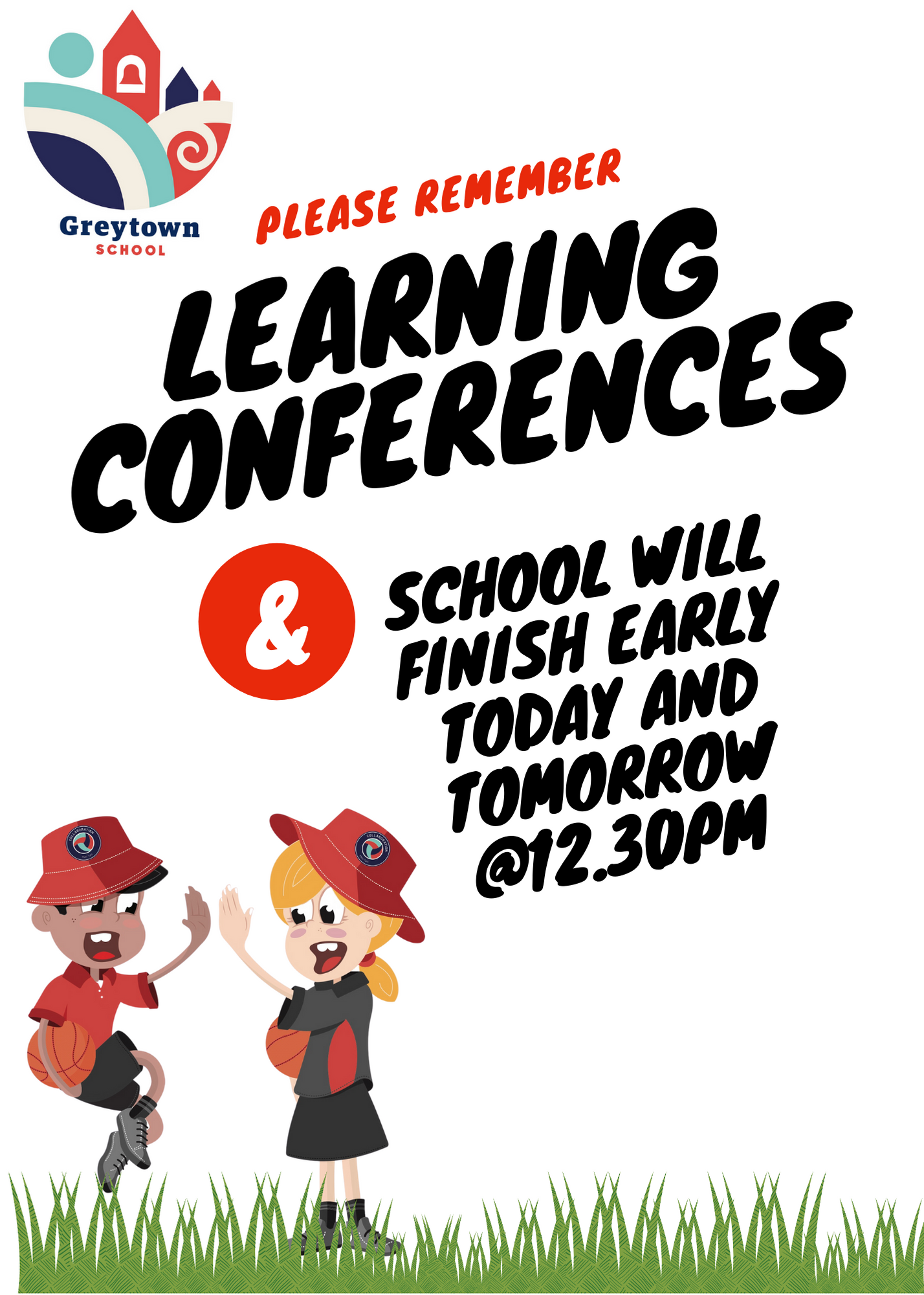 Please remember that school finishes early today and tomorrow at 12.30 for Learning Conferences.
